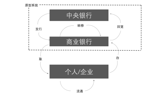 在二元模式下,中央银行负责数字货币的发行与验证监测,商业银行从中央银行申请到数字货币后,直接面向社会,负责提供数字货币流通服务与应用生态体系构建服务。